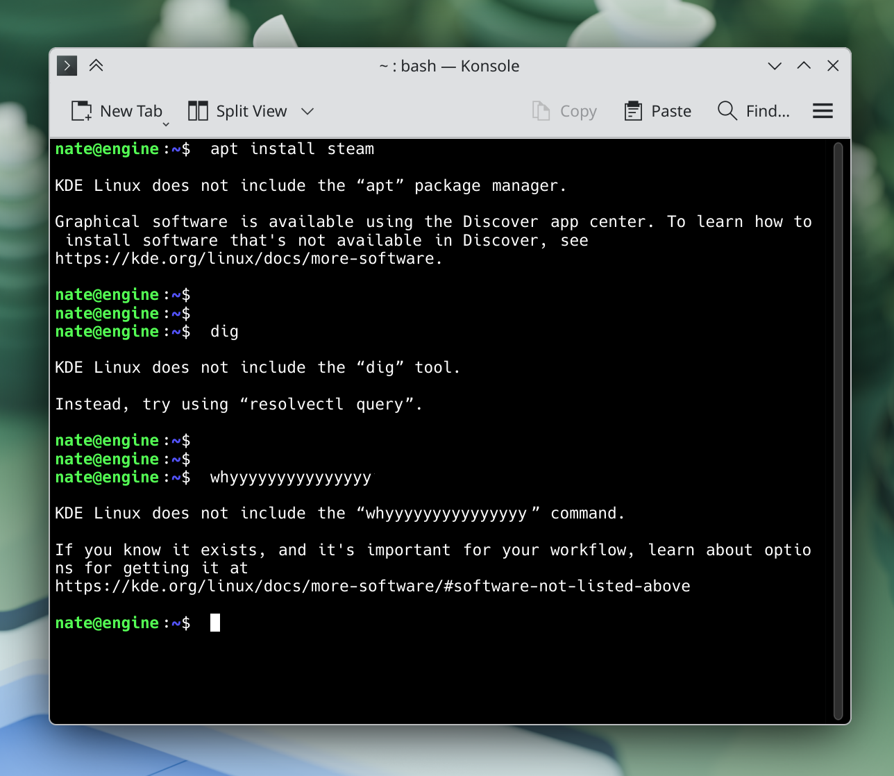 Ek het ‘n gebou eenvoudige “opdrag nie gevind nie” hanteerder wat sy bes probeer om mense in die regte rigting te stuur wanneer hulle ‘n opdrag uitvoer wat nie op KDE Linux beskikbaar is nie: