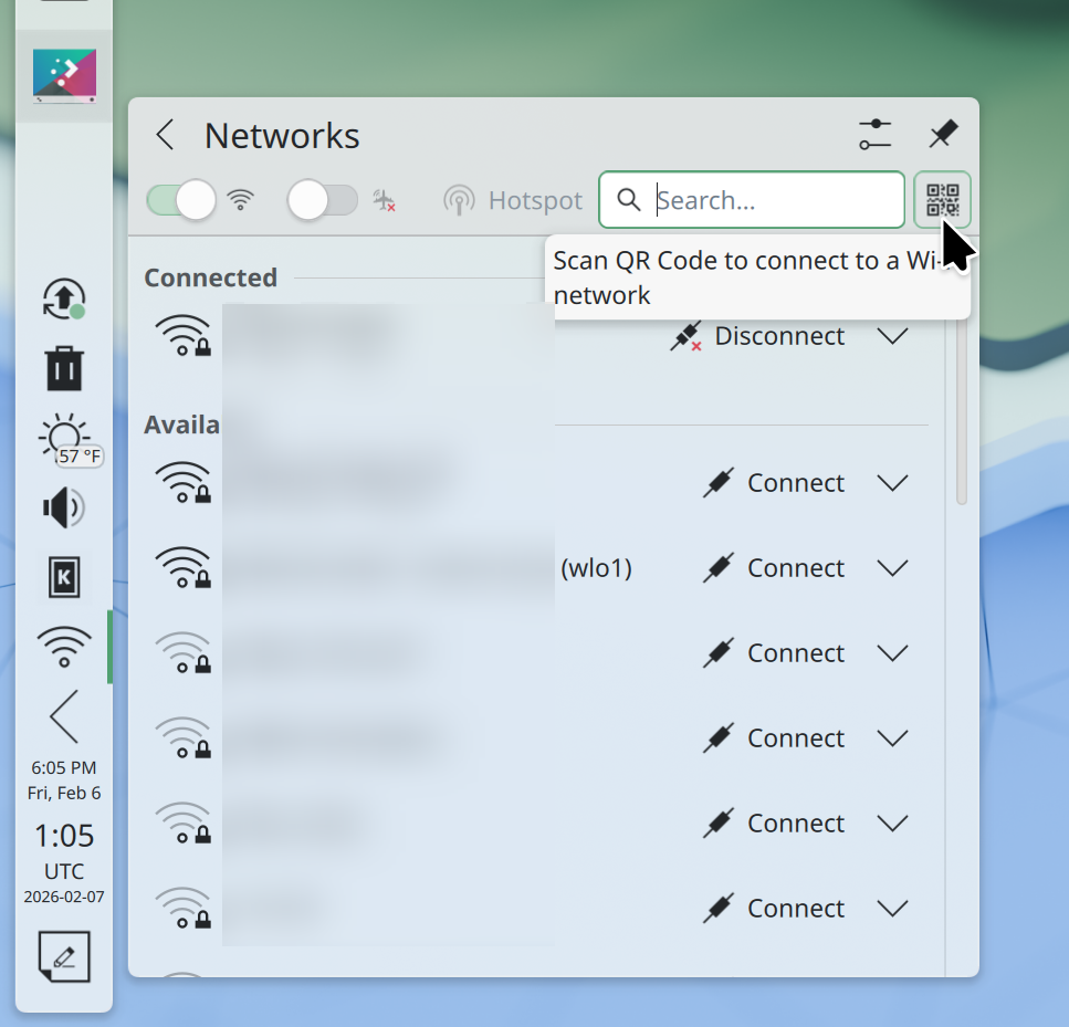 Dankie aan Thomas Duckworth, KDE Linux stel nou die draadlose regulatoriese domein toepaslik inkyk na dit vanaf jou tydsone, en laat jou hardeware al die krag gebruik wat dit wettiglik kan. Dit werk die waarde op as jy ook die tydsone verander! En ook dankie aan Neal Gompa vir die bou van die gereedskap ons het hiervoor in KDE Linux geïntegreer.