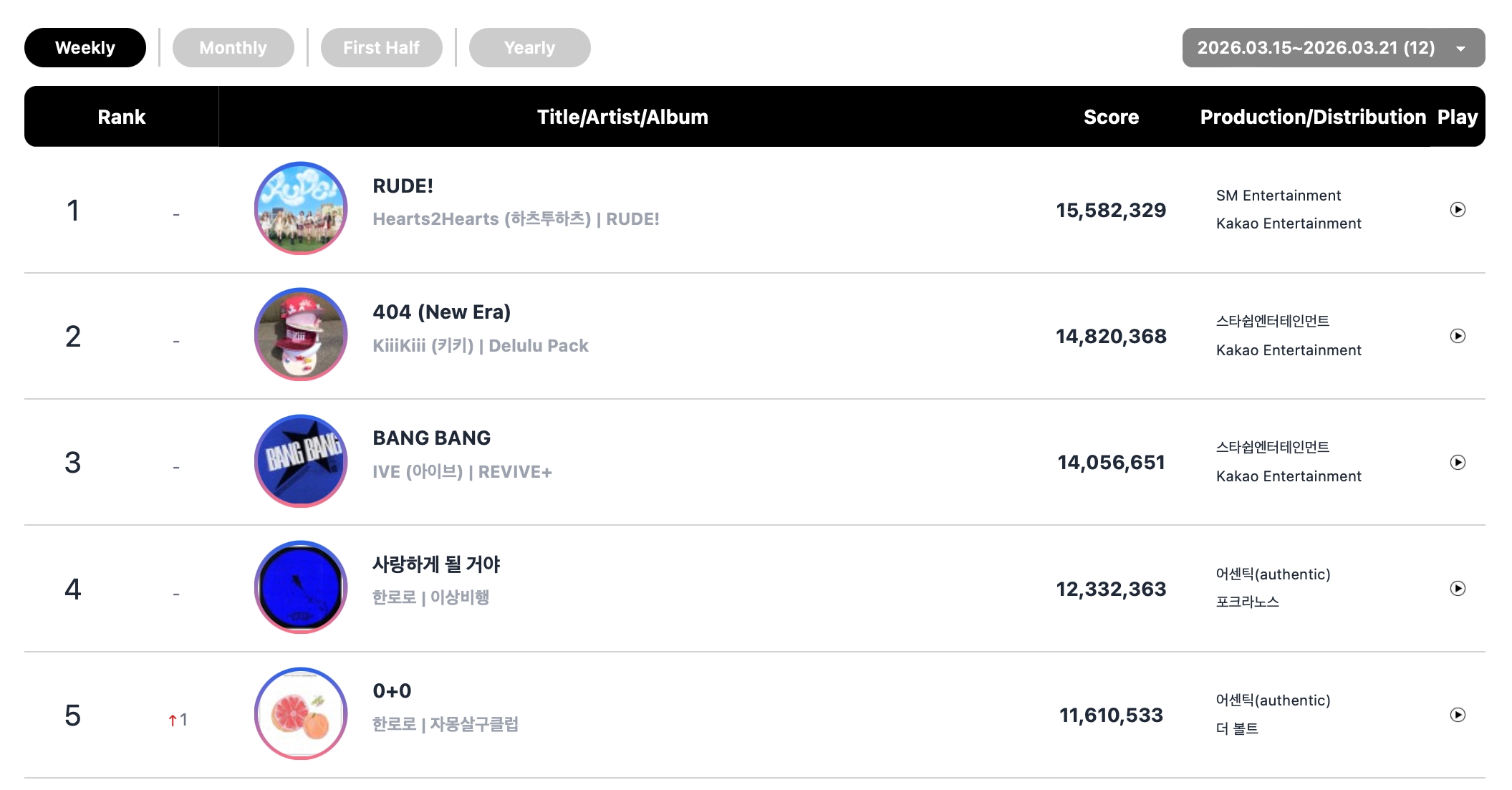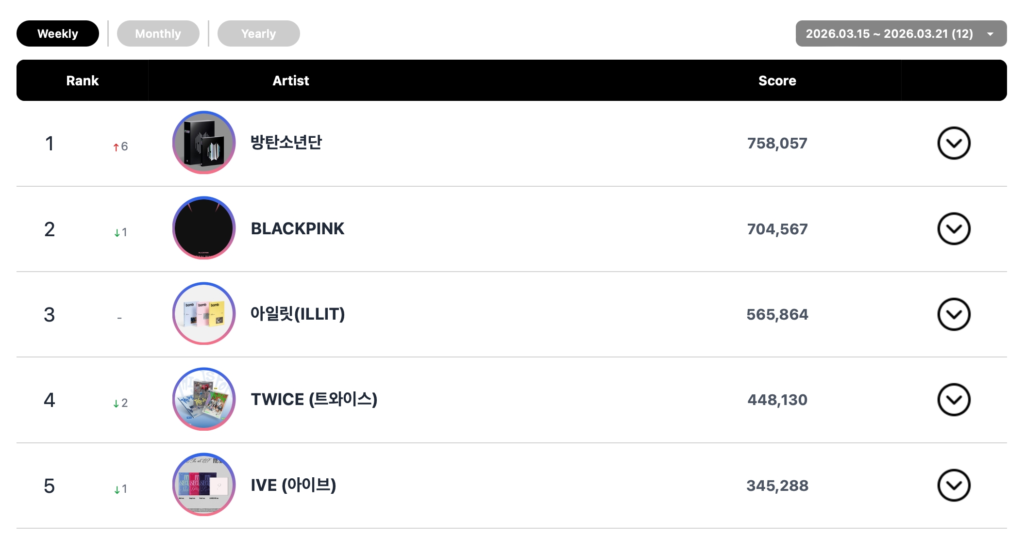 Circle Map (previously known as Gaon Chart) has released its chart rankings for the week of March 15 to 21!