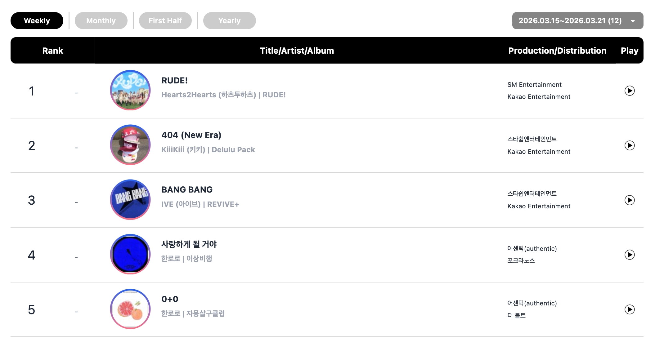 Hearts2Hearts retained their double crown on the Circle charts this week, with their hit single “BIG!” which remains No. 1 on both the overall digital chart and the streaming chart for the second week in a row. The top five songs on this week’s overall digital chart and streaming chart were exactly the same: “RUDE!” came in at No. 1 on both charts, trailed by KiiiKiii’s “404 (New Era)” at No. 2, IVEsay”BANG BANG” at No. 3, HANRORO’s “Landing in Love” at No. 4, and HANRORO’s “0+0” at No. 5.