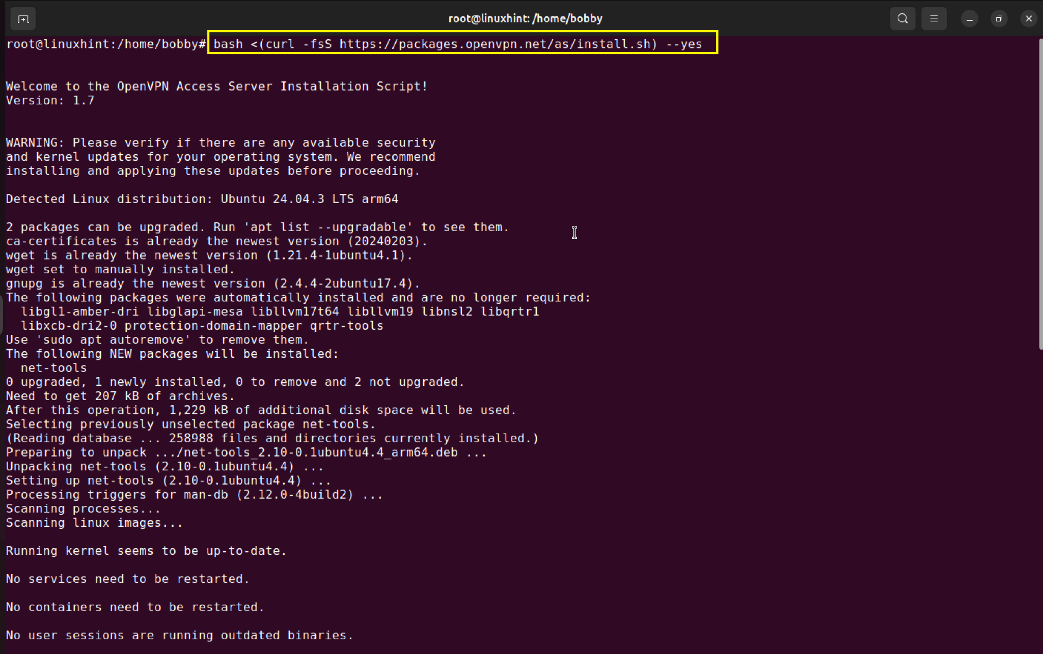 In this tutorial I will show you how to deploy OpenVPN Access Server on Ubuntu 24.04 installed on a VM on my own machine. You can install it on your Ubuntu server in the same way, there is no difference in the procedure.