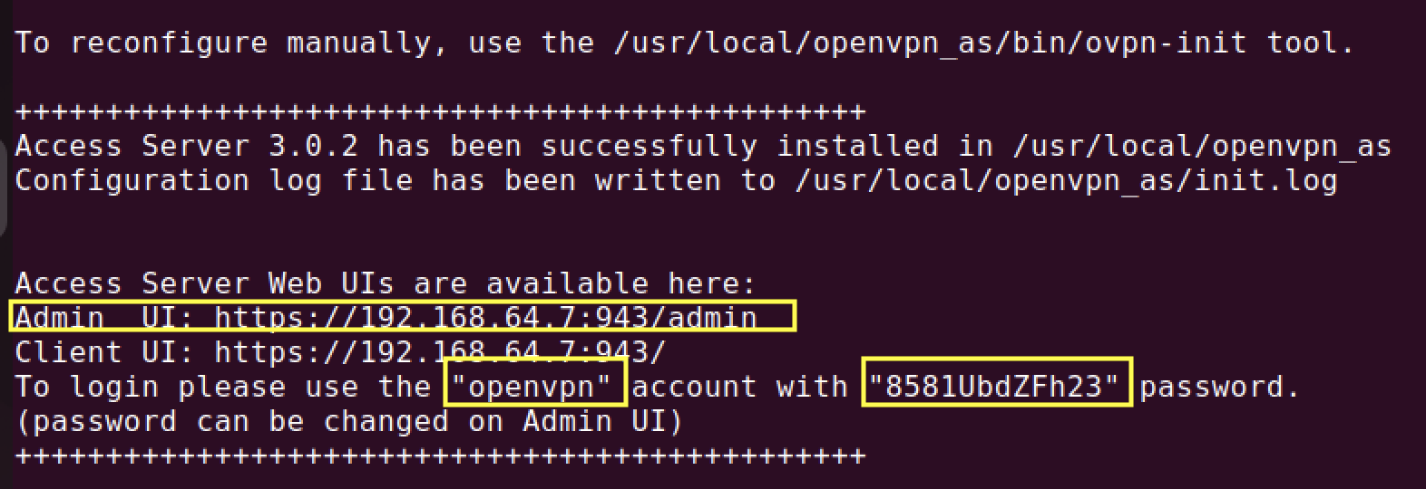 After the installation, scroll back and find this section where you will see Admin UI, Client UI, a username and a temporary password.