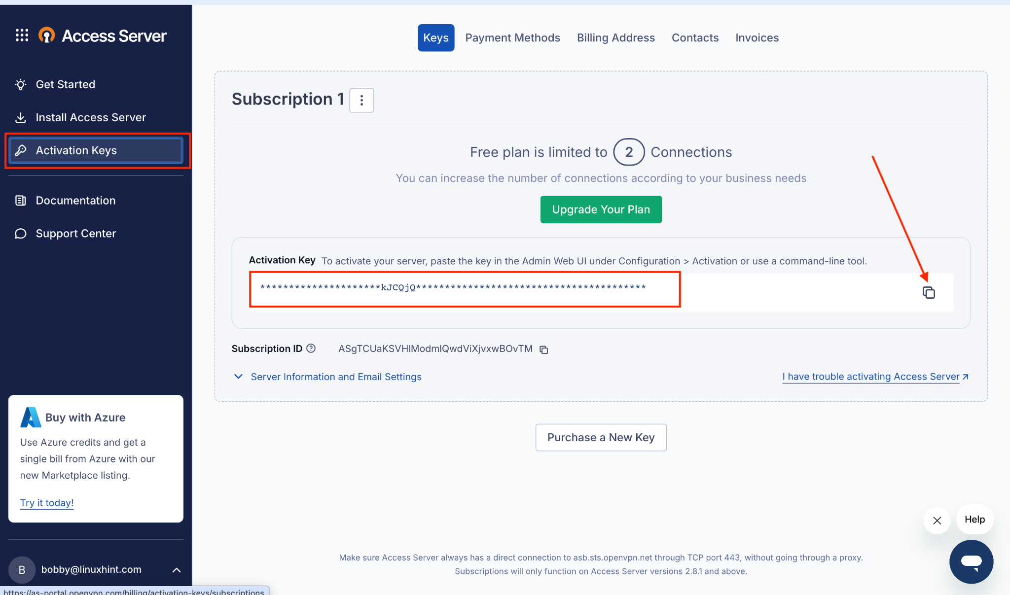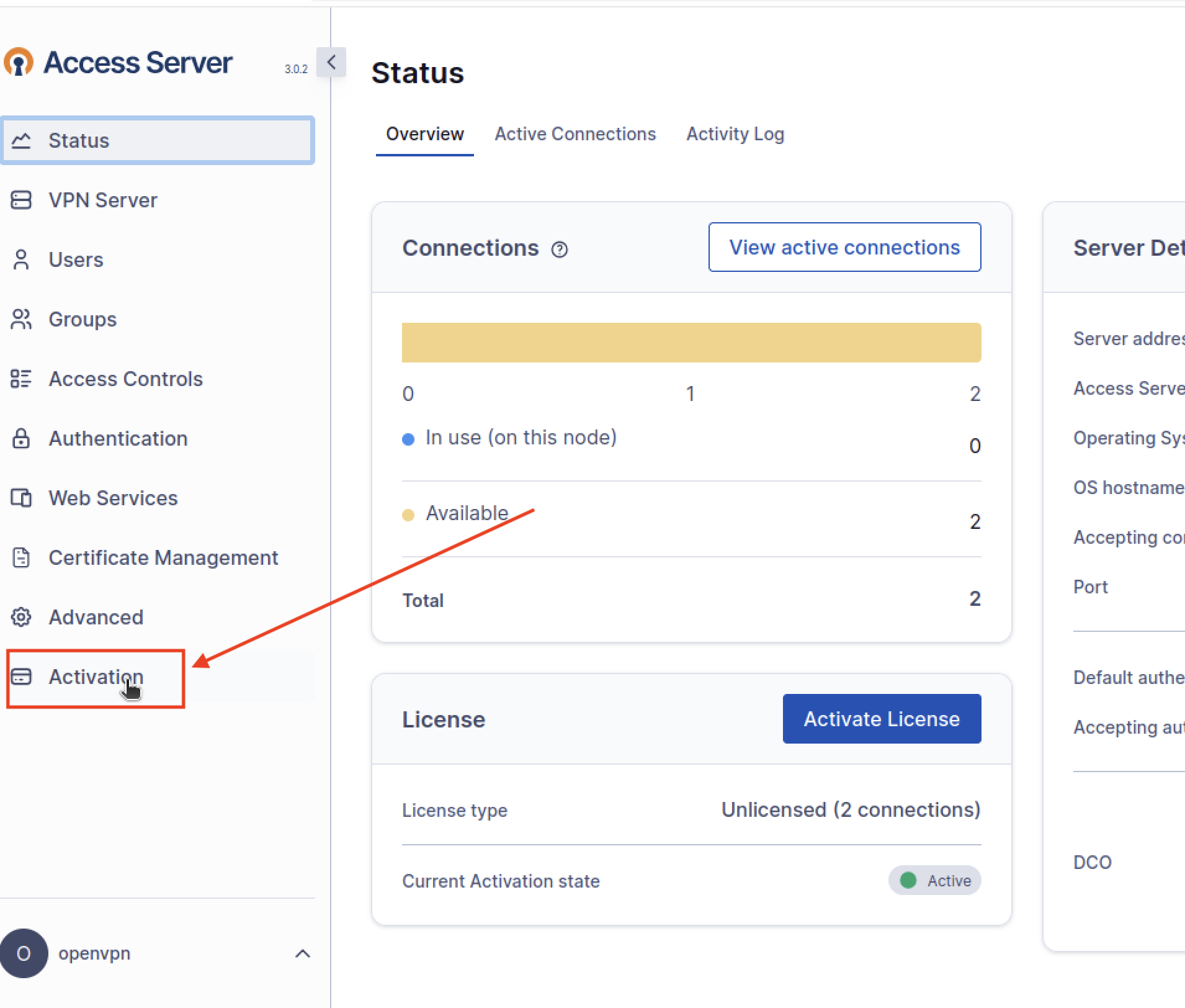6. Activate OpenVPN Access Server (Enter Activation Key)