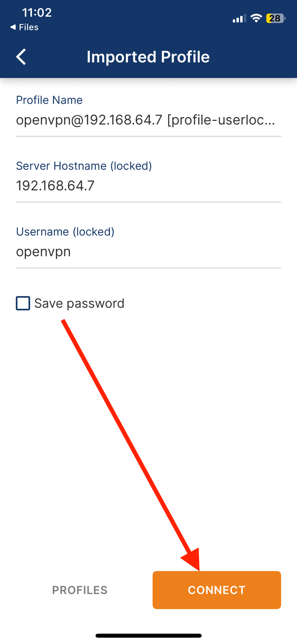 You can also go to your “Connection profile” file location and open it with the “OpenVPN Connect” application. It will show you the details, after checking it, click on “Connect”.