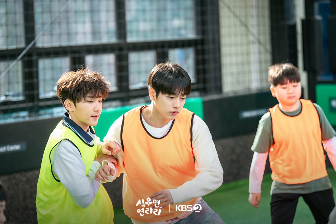 In the following photos, Sung Ji Cheon and Park Soon Kyung proudly face each other in a football match. Unlike Park Soon Kyung—who is skilled enough to teach children how to play—Sung Ji Cheon may lack athletic ability, but refuses to back down as he keeps his rival in check. The contrast between Sung Ji Cheon’s jealousy-fueled determination and Park Soon Kyung’s relaxed confidence adds an entertaining edge to their rivalry over Im Bo Mi. Will Sung Ji Cheon be able to show his charm—not only in front of his younger brothers Sung Ji Sang (Seo Yoon Hyuk) and Sung Ji Gu (Yang Woo Hyuk) but also to Im Bo Mi—and what will be the outcome of the match?