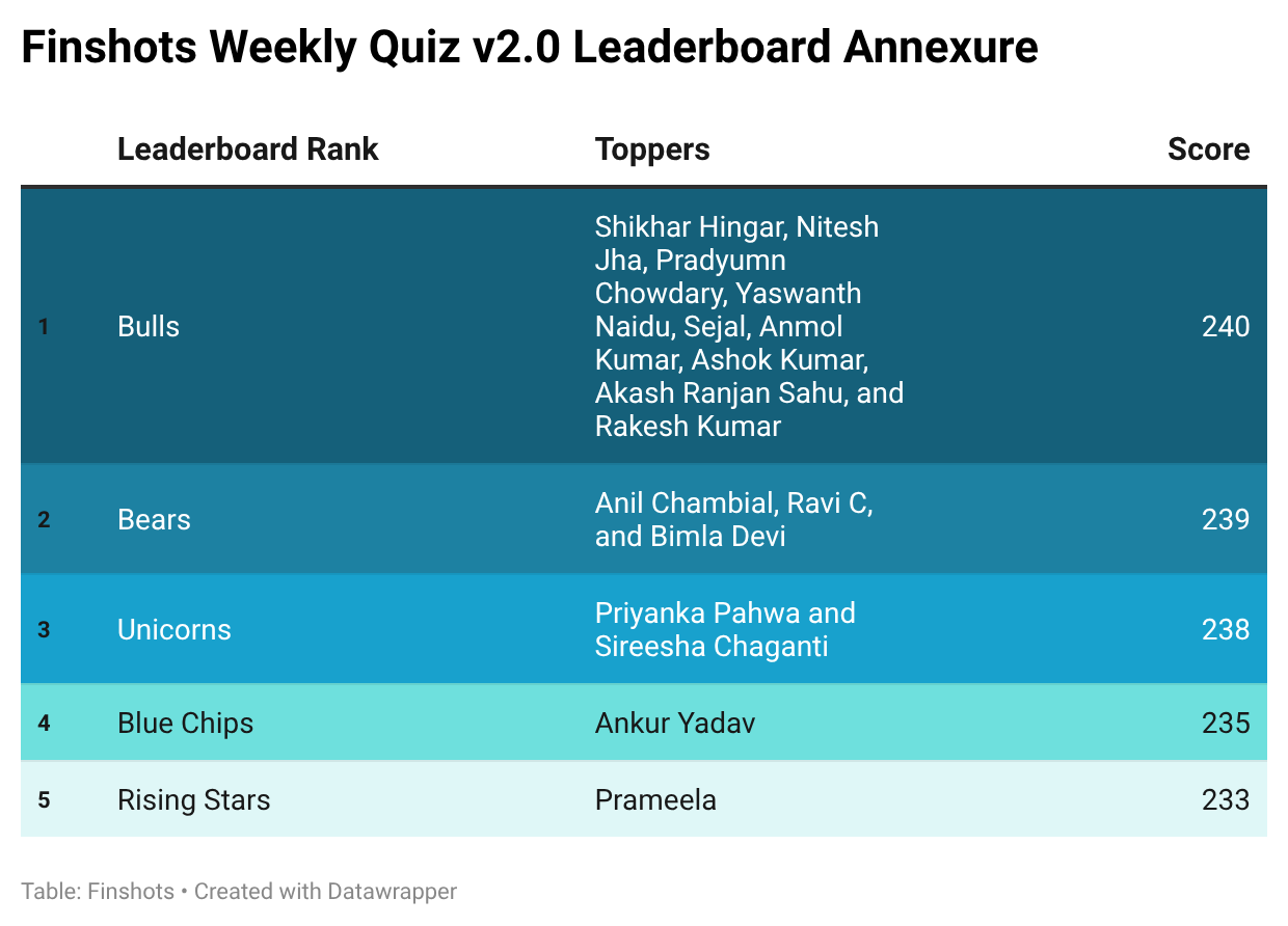 And to the rest of you whose names made the leaderboard, congratulations! You may not have won the merchandise this time, but you’ve consistently shown up and earned a spot on Finshots’ weekly leaderboard. That’s pretty cool.